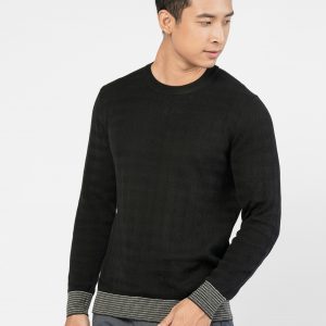 Áo len nam mỏng cổ tròn cổ tay gấu phối màu